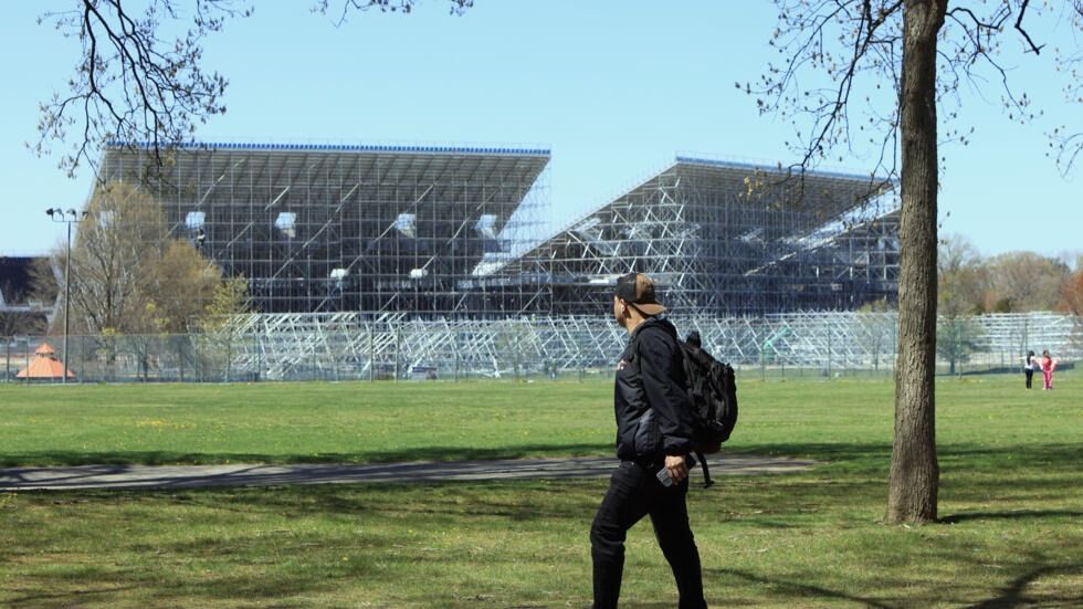The temporary 34,000 capacity stadium at Eisenhower Park has already been built with stands and hospitality areas already in place and the outfield has been put in place.