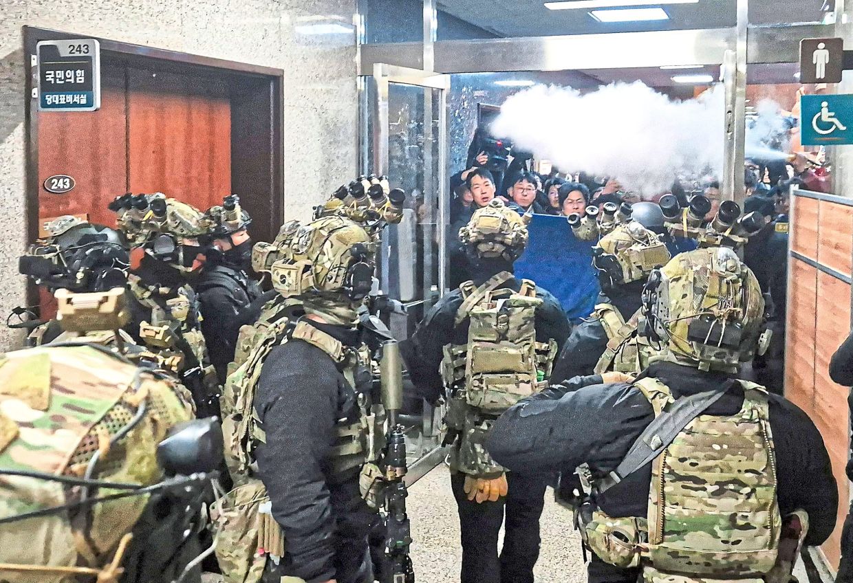 The surprise declaration of martial law in the major US ally late on Tuesday caused a standoff with parliament, which rejected Yoon’s attempt to ban political activity and censor the media, as armed troops forced their way into the National Assembly building in Seoul.