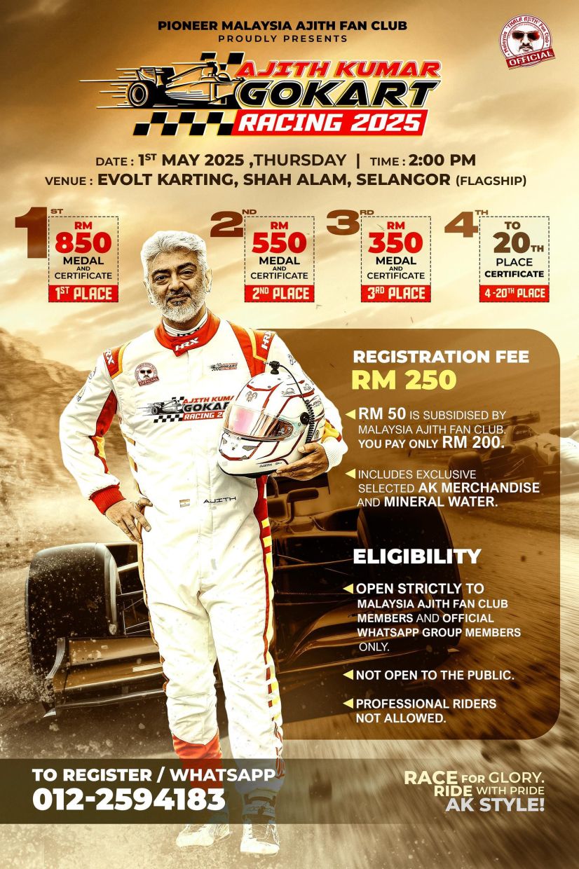 The Malaysian Ajith Fan Club and Pengerak Belia Selangor had organised the Ajith Kumar Go-Kart and celebration event in Shah Alam on May 1.