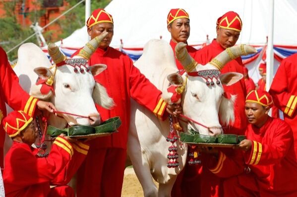 As tradition goes, at the celebration venue, the royal oxen decorated with colourful ornaments will be set free to eat plates of rice, grass, sesame, corn, and peas, and to drink water and wine.