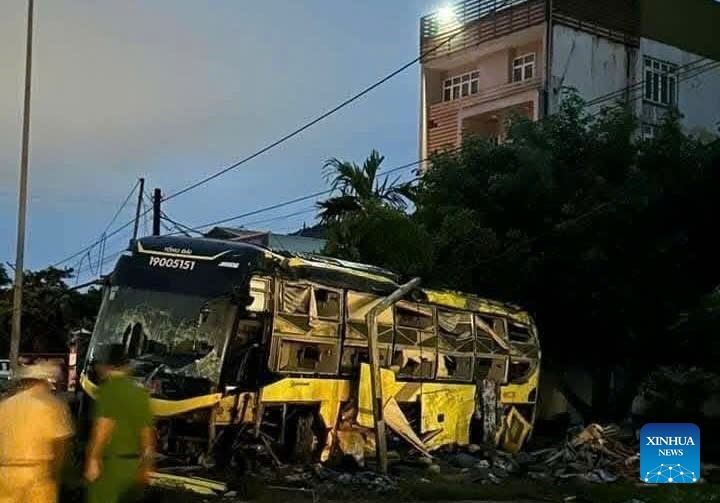 At least nine people were killed and 16 others severely injured when a sleeper bus overturned in Vietnam's central province of Ha Tinh early Friday morning, Vietnam News Agency reported. - Photo: VNA/handout via Xinhua