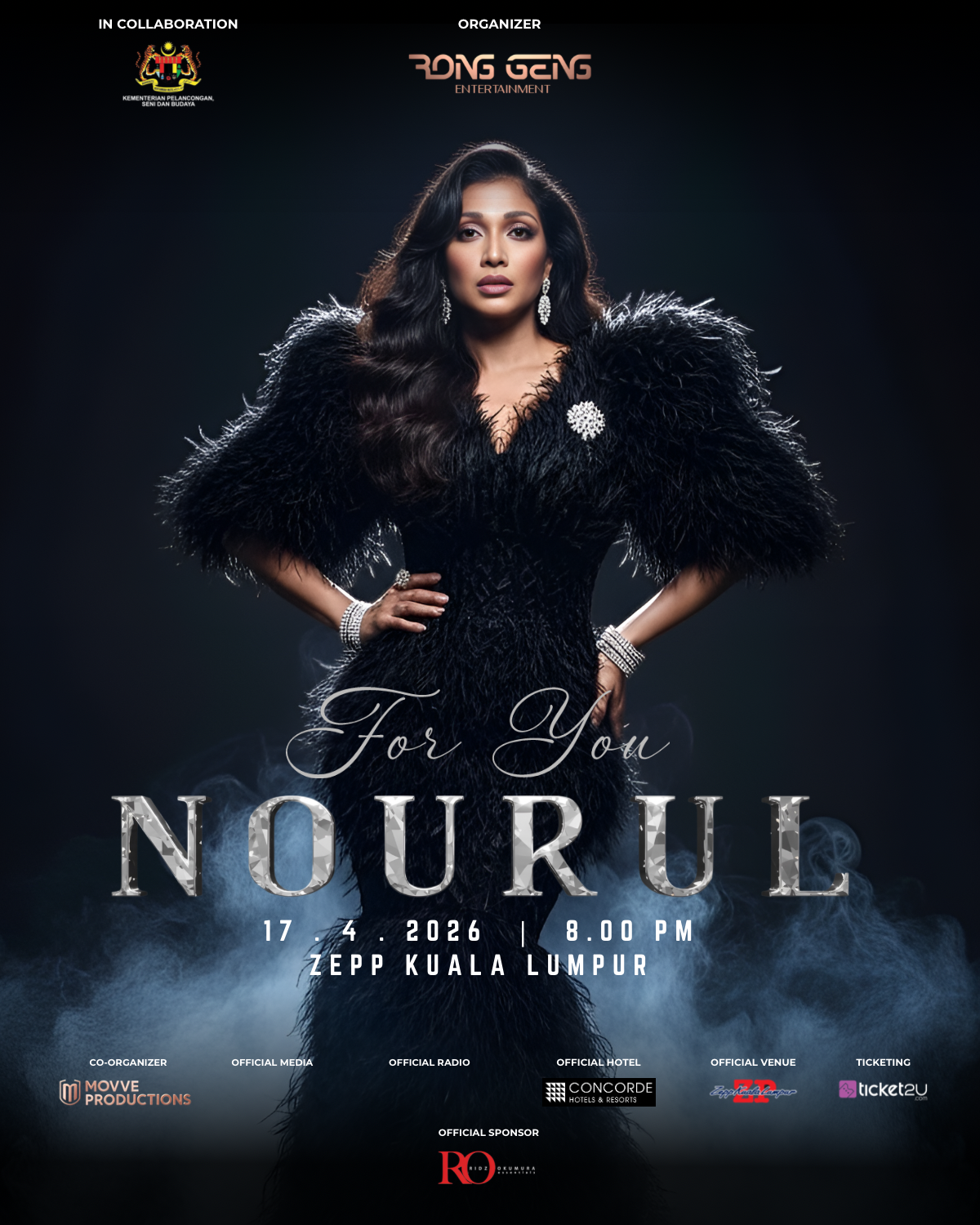 Organised by Rong Geng Entertainment, the “For You: Nourul” will take place at Zepp Kuala Lumpur on 17 April next year. Tickets went on sale on December 2 via the ticket2u website. Tickets for the concert are priced at RM105 (GOLD), RM155 (DIAMOND), RM255 (PLATINUM) dan RM355 (VIP).