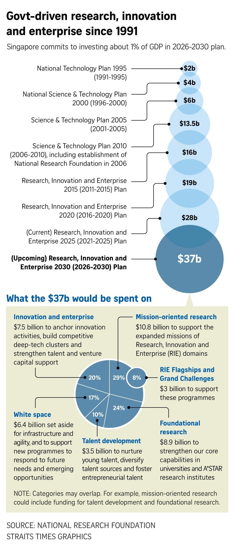 NRF chairman Heng Swee Keat said at the press conference: “The most critical success factor is the breadth and depth of talent... While continuing to develop our talent base, we will also diversify our talent mix. Beyond scientists focusing on basic research, we will include science innovators, entrepreneurs and more.”