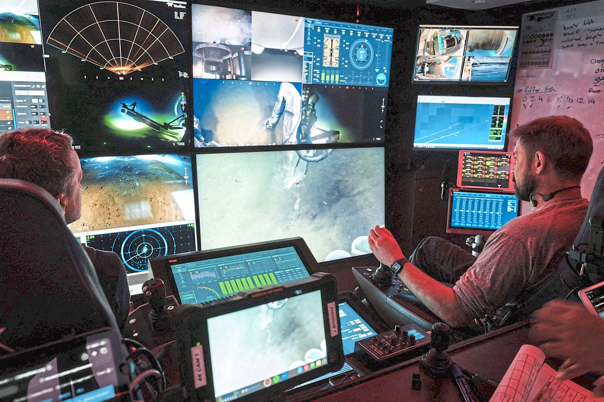 For deeper exploration, the scientists rely on OceanX’s ROV, operated from a futuristic-looking “mission control” where two crew members sit in gamer-style armchairs.