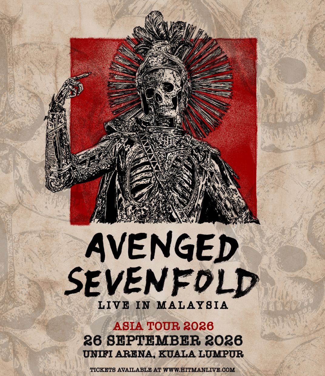 The icons of contemporary metal have officially added Kuala Lumpur to their Asia tour, bringing their explosive live show to Unifi Arena KL (formerly known as Axiata Arena) on 26 September 2026 for ‘Avenged Sevenfold Live in Malaysia’.