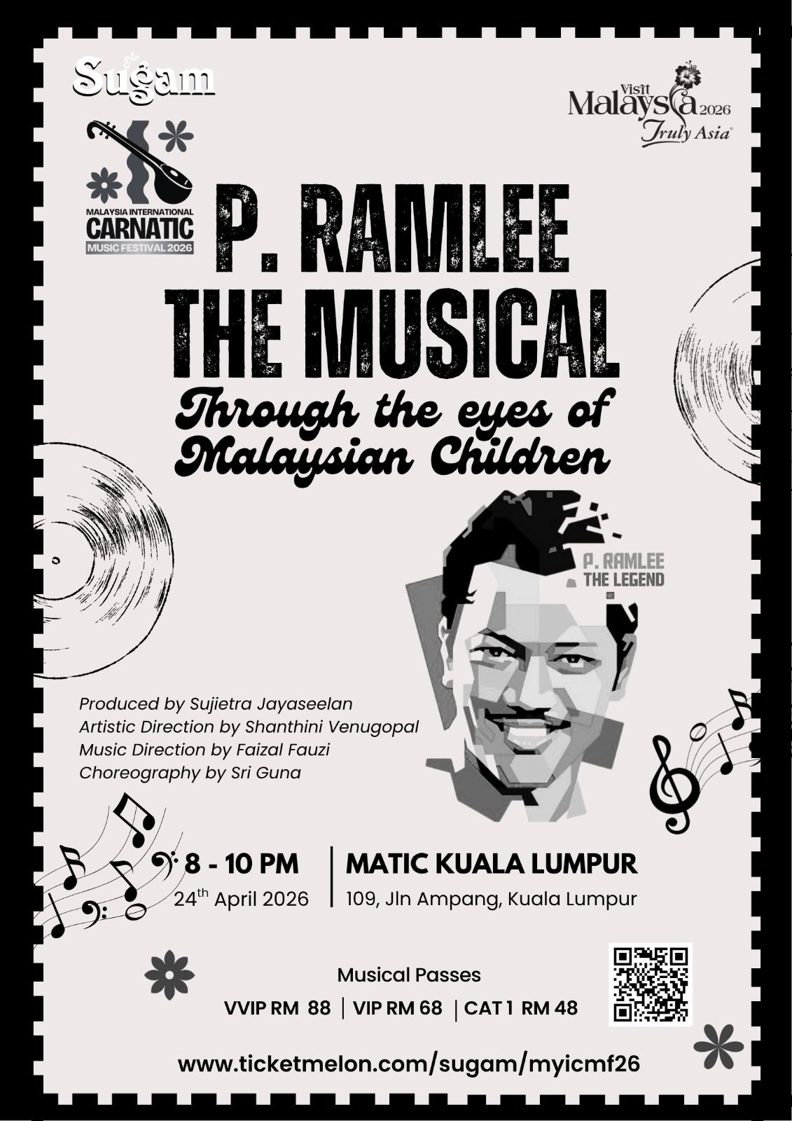 Kuala Lumpur will once again take centre stage in the global arts landscape as the Malaysia International Carnatic Music Festival 2026 (MYICMF 2026) returns from April 24-26, and among the starry highlights of the event will be Malaysian acting and singing legend P. Ramlee's mini showcase in Carnatic style.