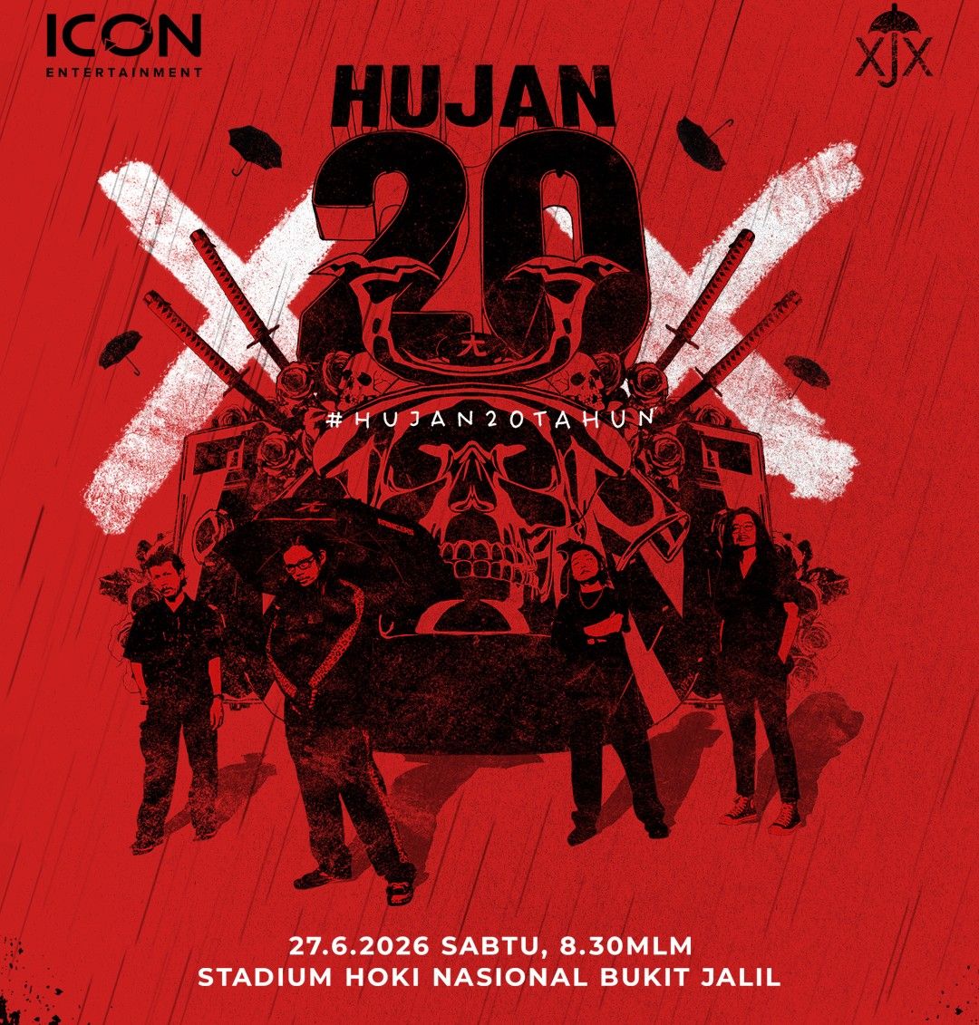 Named HUJAN XX: #HUJAN20TAHUN, this large-scale concert will take place at the National Hockey Stadium, Bukit Jalil, Kuala Lumpur, on June 27, 2026.