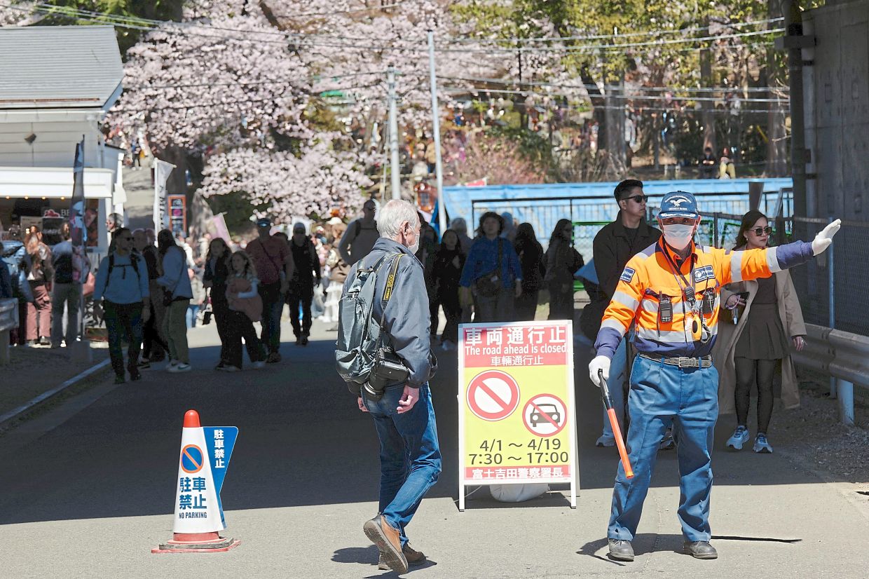 Beginning April 1, at the start of the region’s cherry blossom season, Fujiyoshida increased its security guards and restricted entry of tour buses and vehicles into the scenic neighbourhood, requiring visitors to reach the park on foot.