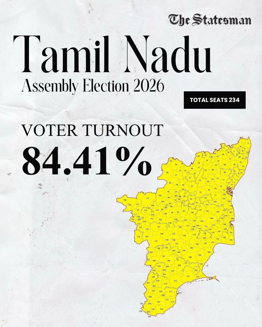 TAMIL NADU, (India): The voting for the Tamil Nadu Assembly Elections 2026 was held on Thursday (April 23). The voting across all the 234 constituencies began at 7am in the morning and concluded at 6pm, with a record 84.73 per cent turnout.