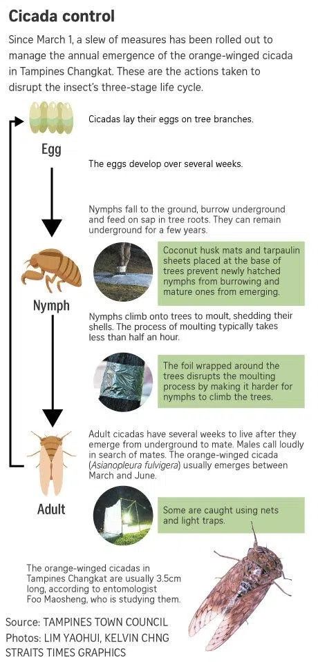 Meanwhile, the team is managing the situation through physical trapping and removal of cicadas to reduce the population, said Choo.