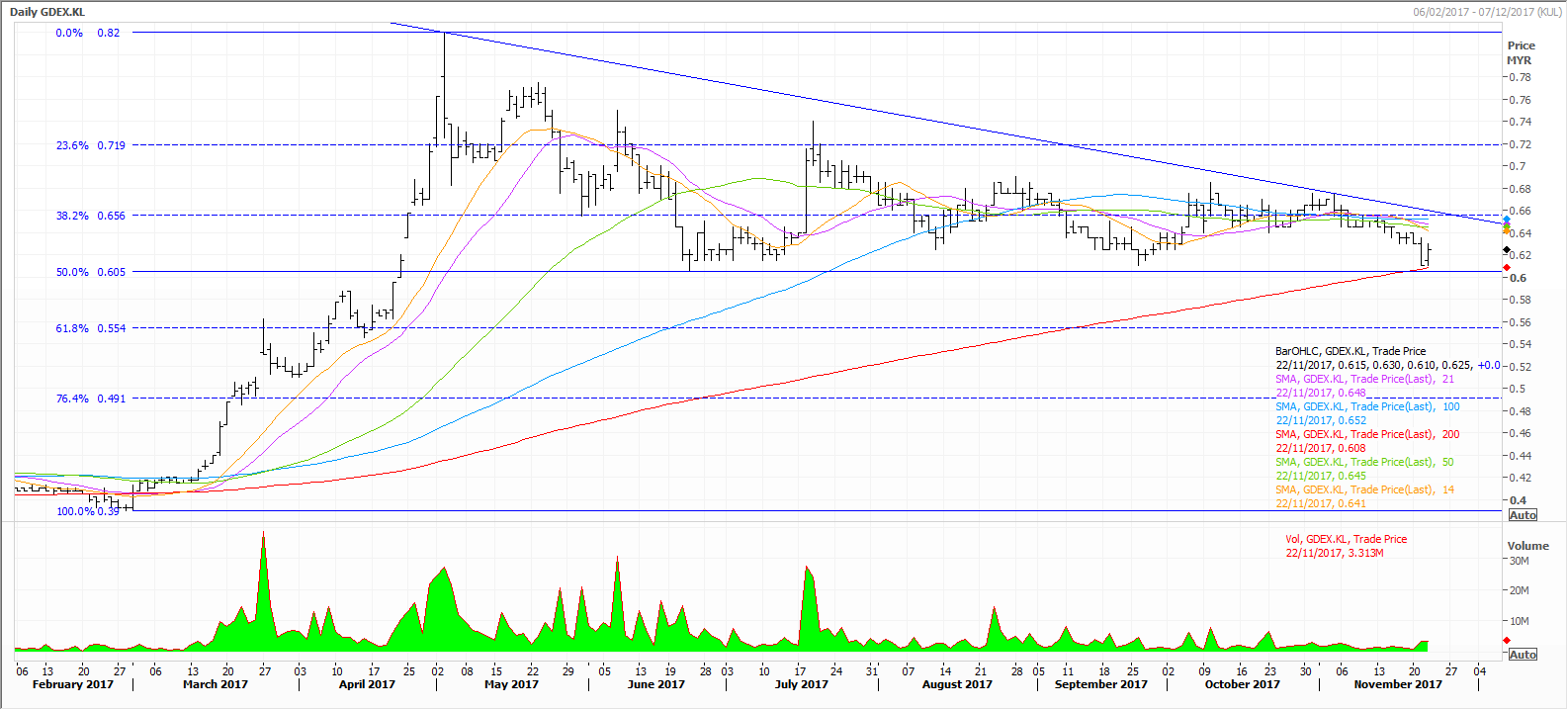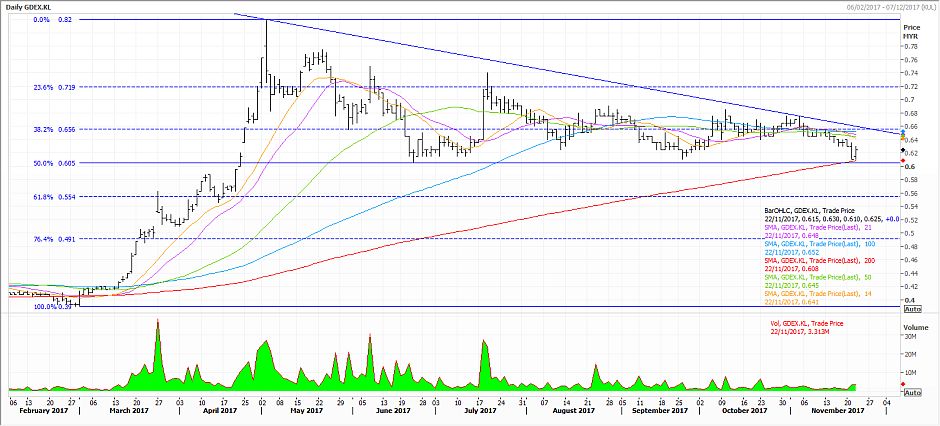 Based on the daily chart, GDex carved out a descending triangle pattern following a period of correction and consolidation process recently.