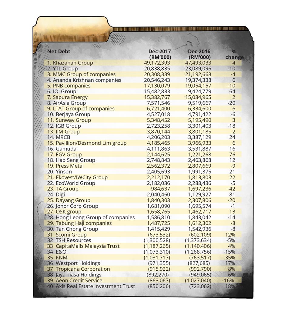 DEBT has always been an efficient tool for finance and investment and it comes to no surprise that the list of companies that have the largest amount of debt includes some of the largest companies on Bursa Malaysia.