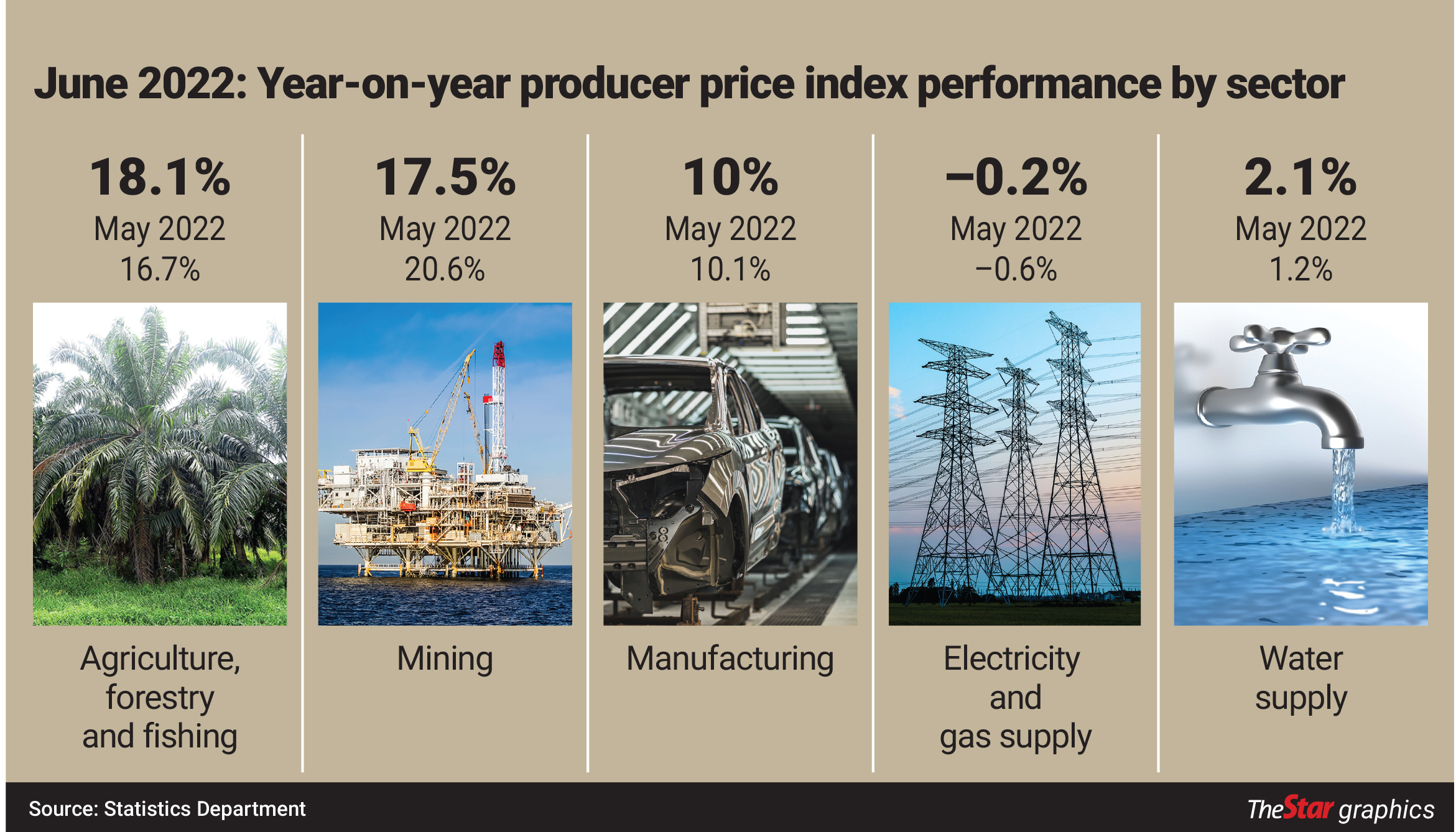 KUALA LUMPUR: The producer price index (PPI), which measures the costs of goods at the factory gate, eased to 10.9% last month compared with 11.2% in May as commodity prices came off their highs.