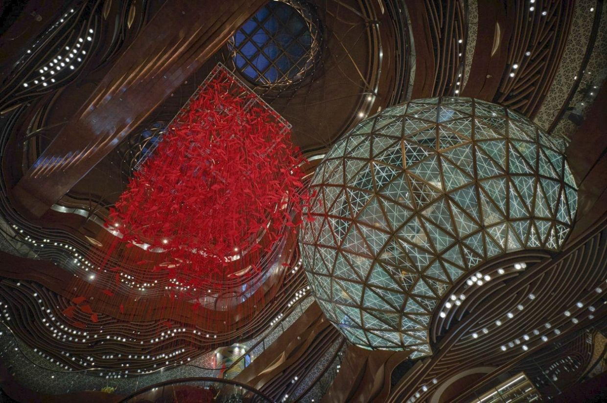 The standout is the Gold Ball, a spherical chamber adorned with v-cut glass panels and LED lights. It doubles up as a venue for art, pop-ups and performances.