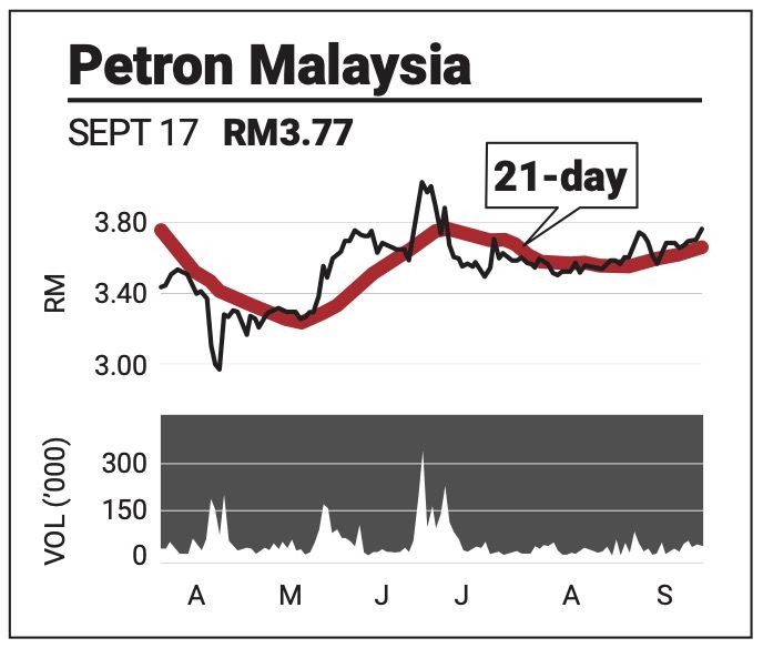 This could be a sign that the share, which has been idling since end-June, is gaining momentum towards a seven-month high of RM4.10. Further continuation of the uptrend could see the share return to a 14-month high of RM5.