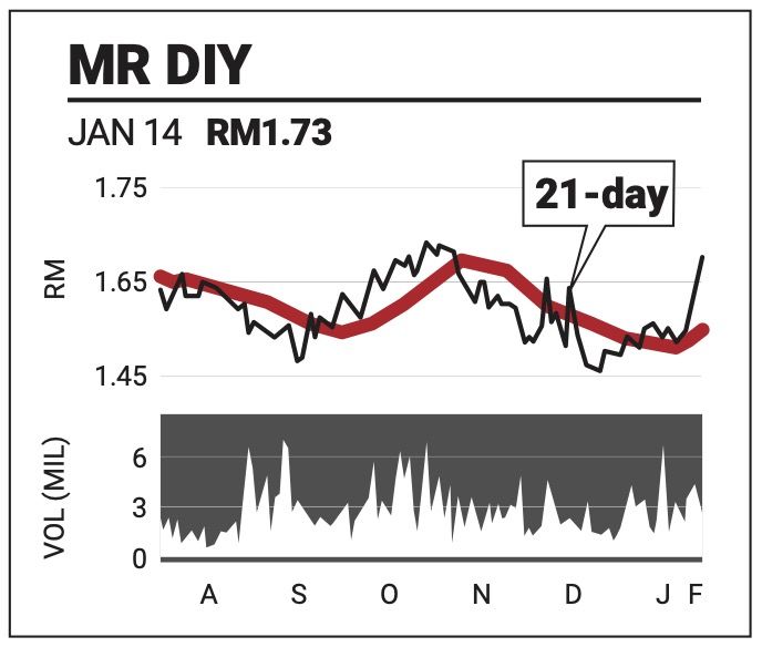 Resistance is pegged at RM1.85 and RM1.92, while support levels are at RM1.37 and RM1.22.