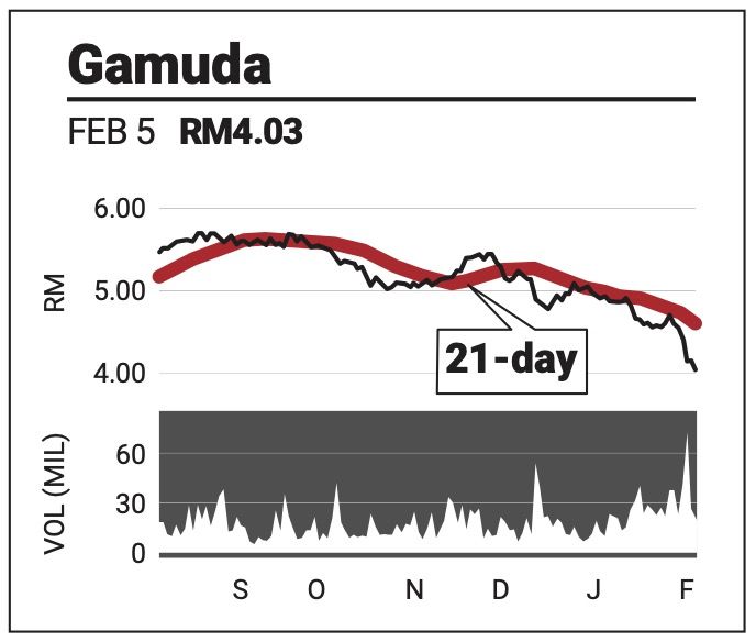 At present, the share is heading towards a support of RM3.85 and firmer platform at RM3.48, which could trigger a rebound on bargain-hunting activities.
