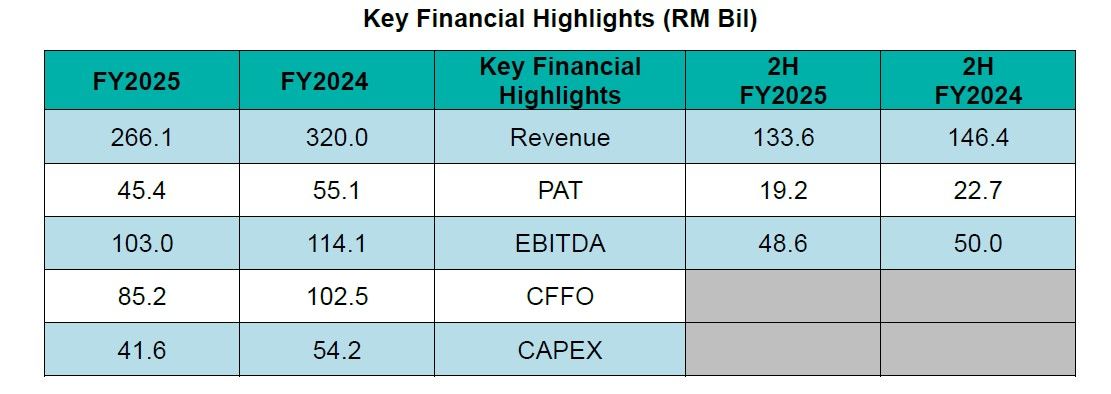 Taufik said FY25 performance was significantly affected by a softer pricing environment, with average Brent crude prices falling 14% year-on-year to US$69.10 per barrel from US$80.76 previously, due to oversupply concerns and persistent macroeconomic uncertainties.