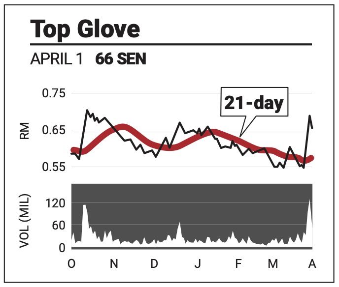Support for the share lies at RM1.02 and 92 sen.