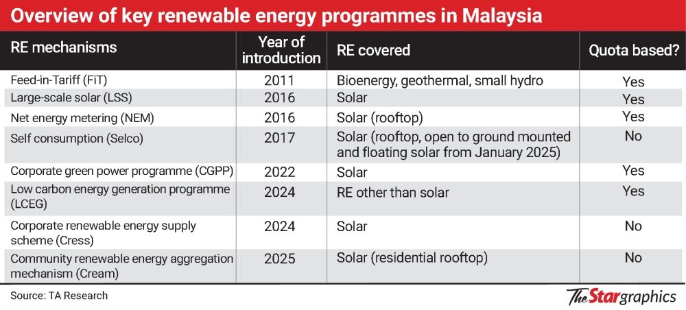With upcoming tenders for the LSS5, LSS5+ and LSS6 large-scale solar programmes, analysts foresee significant growth in solar PV capacity in Peninsular Malaysia, translating into another round of multi-billion-ringgit job flow opportunities for listed companies. Meanwhile, the bidding round for the installation of Bess to third parties is likely to take place in the third quarter of 2025.