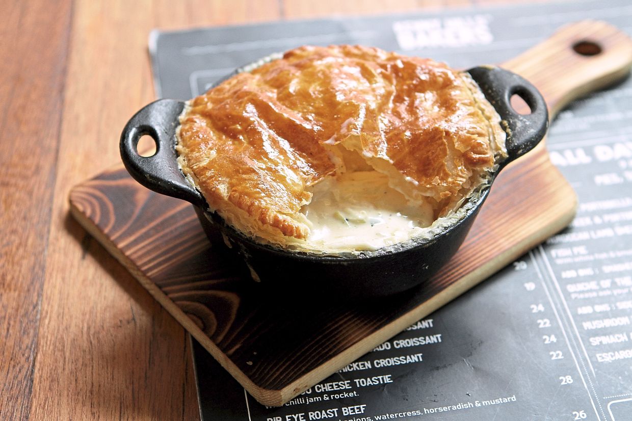 A traditional English dish, also known as fisherman’s pie, it has fish such as cod, salmon, halibut or seafood in white sauce with a mashed potato topping.