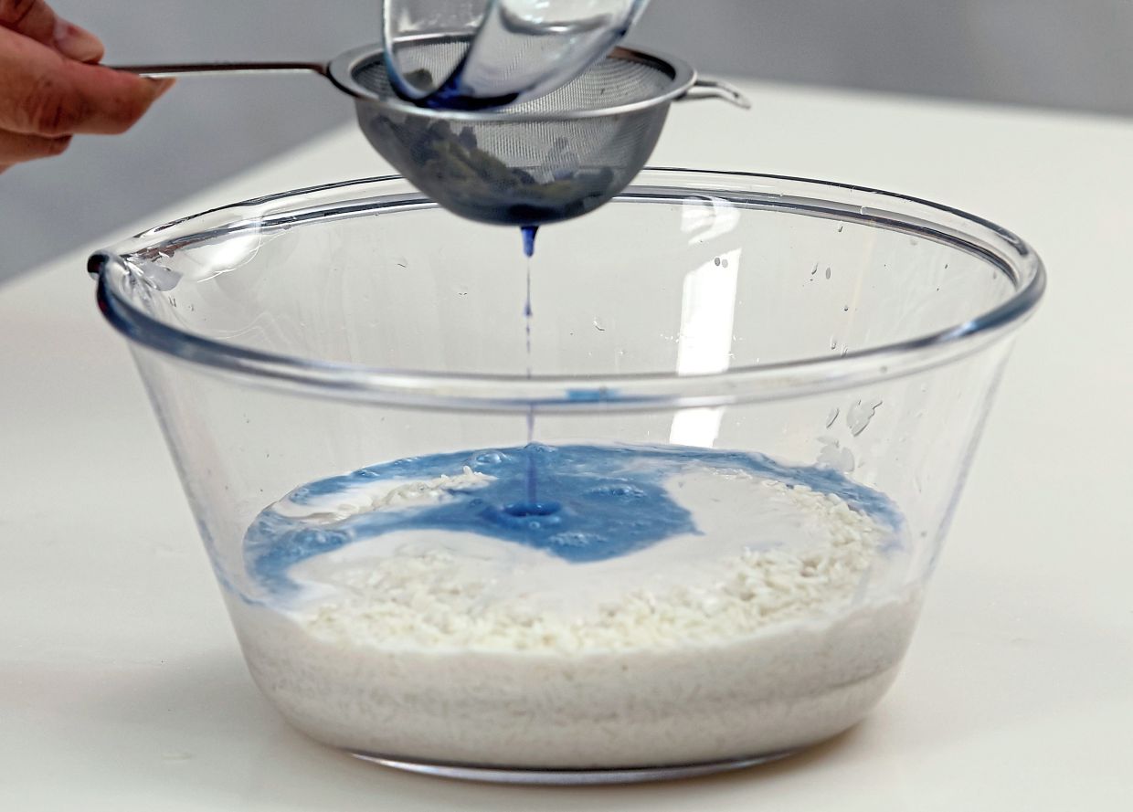 So, after steaming the rice, don’t be afraid to stir in a bit more concentrated butterfly pea extract to get a deeper blue hue.