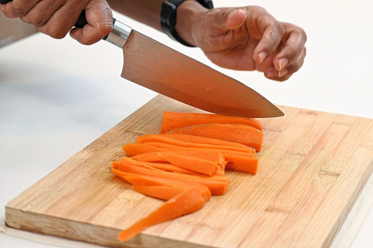 Next, add the cubed carrots and water. Simmer over medium heat with a lid on for a few minutes.