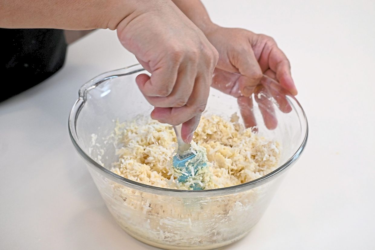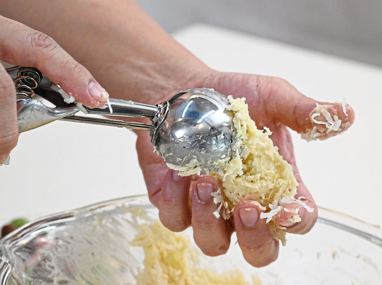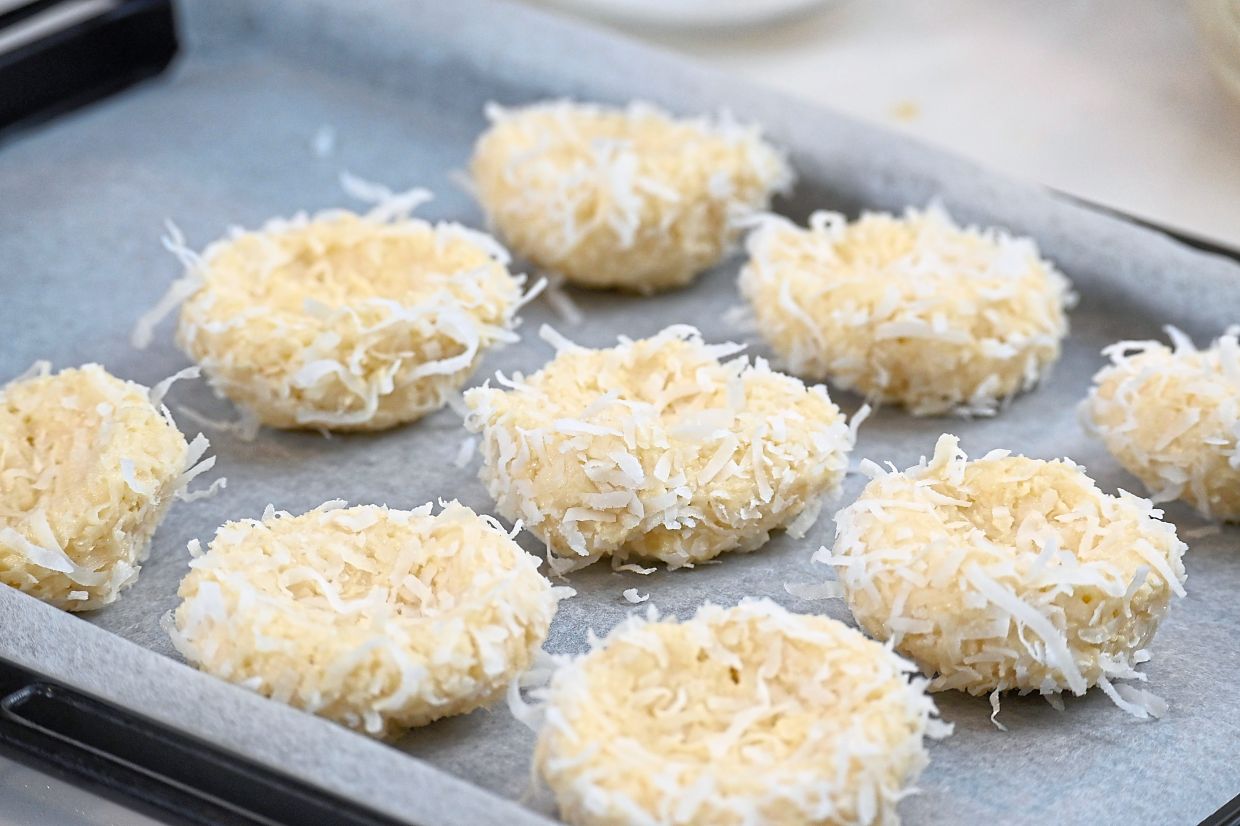 For smaller nests, take one-tablespoon portions of dough, shape into bowls and coat in the remaining coconut flakes.