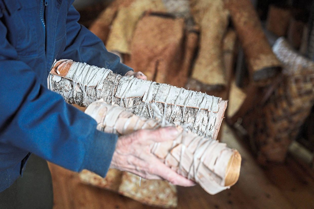 “It will still be usable in 10 years,” says Pekkarinen, holding a roll of bark that he has cleaned and dried.