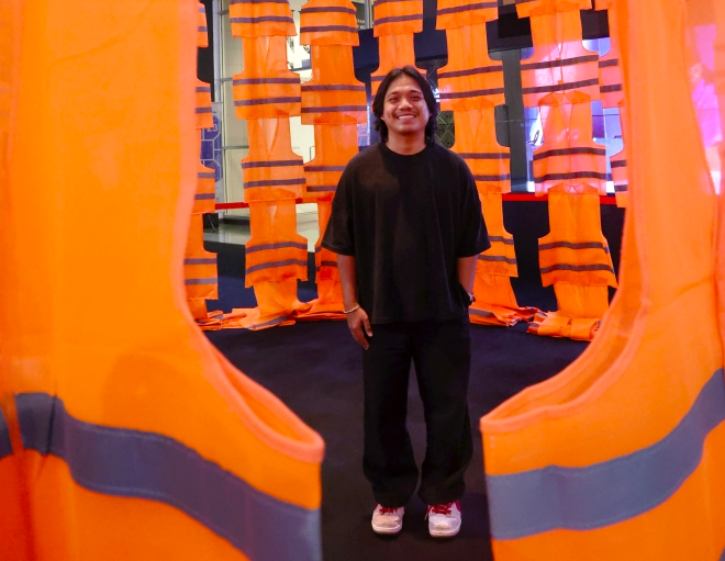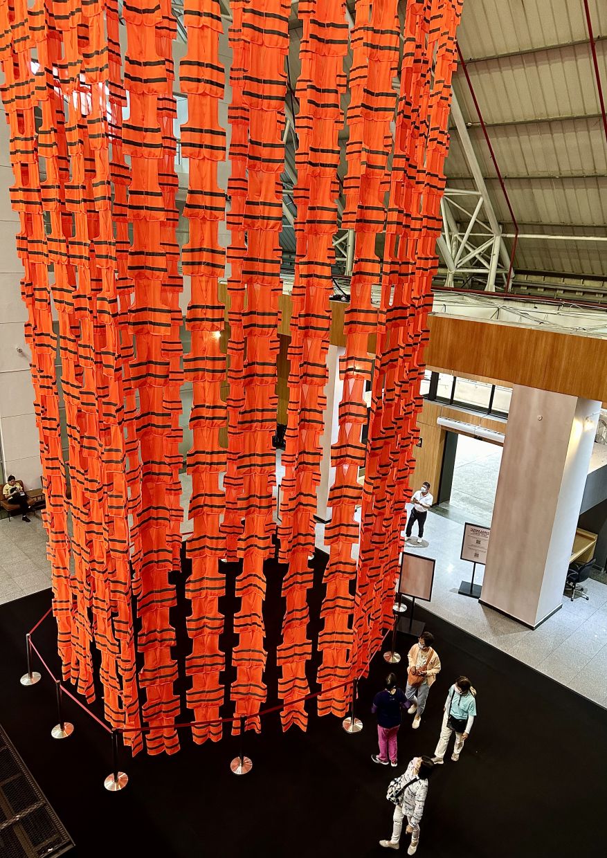 “I wanted to create the ‘presence’ of the Menara Condong at the National Art Gallery, and the neon vests which played a major role in the Teluk Intan installation return to symbolise the essence of the landmark, forming a mass object,” says Zulkefli, who is aiming to expand the series for its upcoming South Korean appearance.