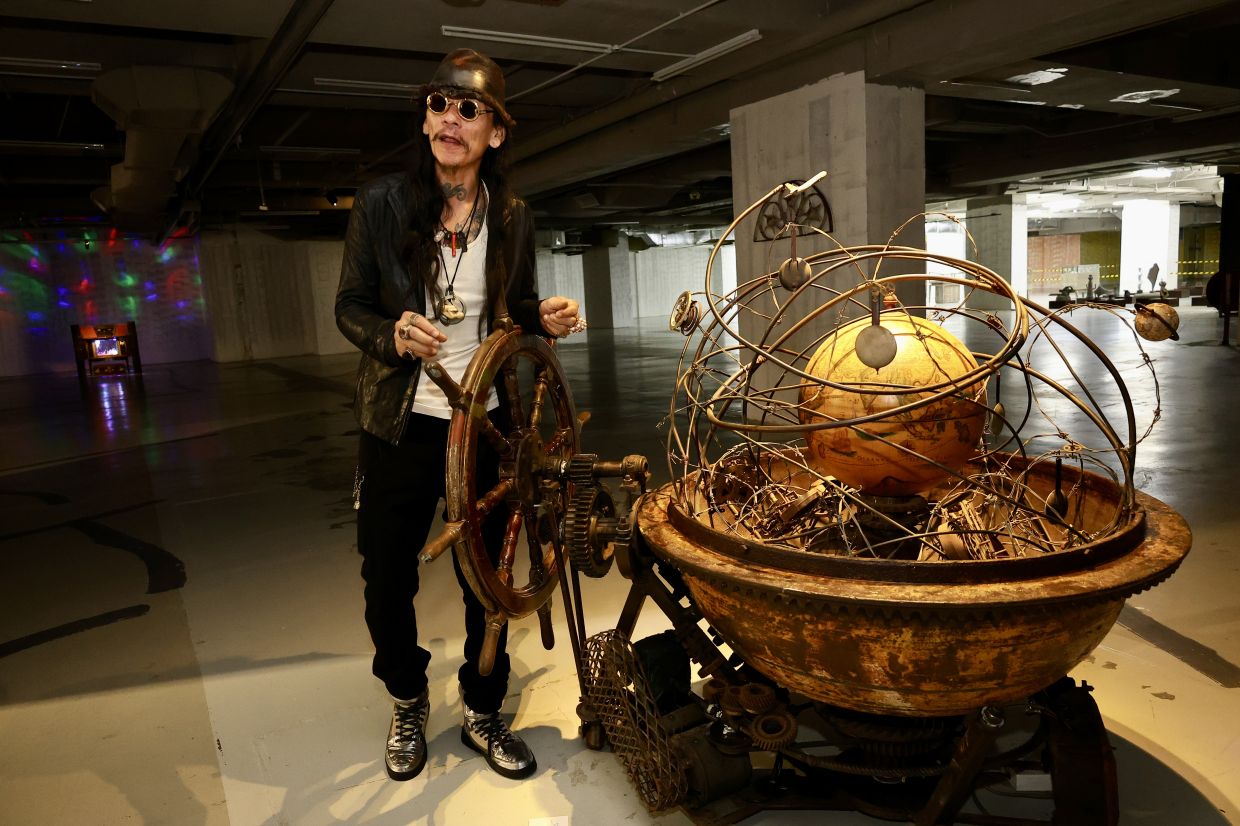 The warehouse-style ambiance of the exhibition space perfectly complements the "junkyard" theme of Ono Kang's 16 installations.