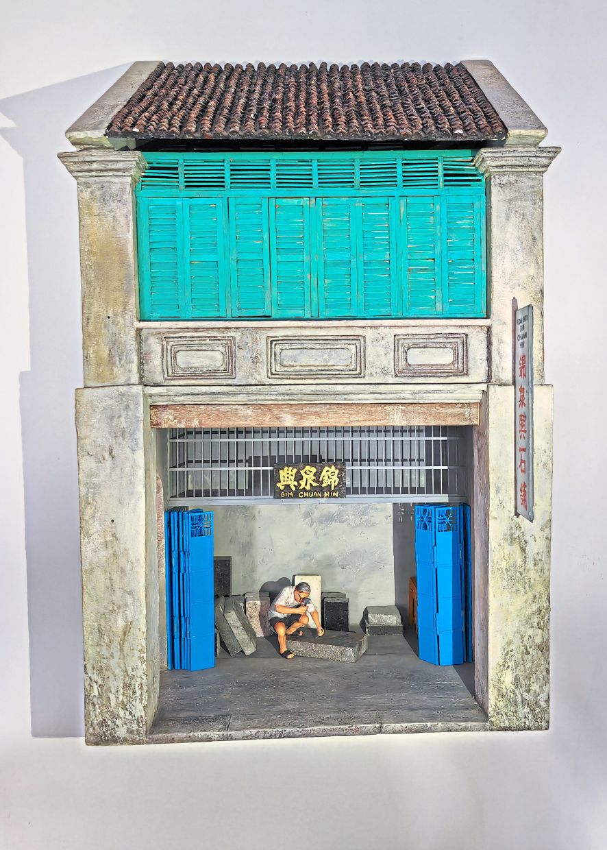 He has completed 10 pieces so far, featuring lantern, joss stick, effigy, trishaw, shoe and songkok makers, wooden signboard and tombstone engravers, a rattan weaver and a blacksmith.