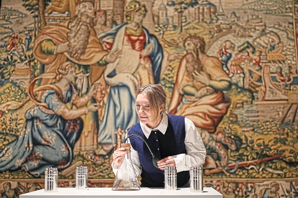 A woman smells an 18th-century Paris scent probe at 'The Secret Power Of Scents' exhibition, which traces the history of fragrance from antiquity to the present at the Kunstpalast Museum in Dusseldorf, Germany. – Photos: AP