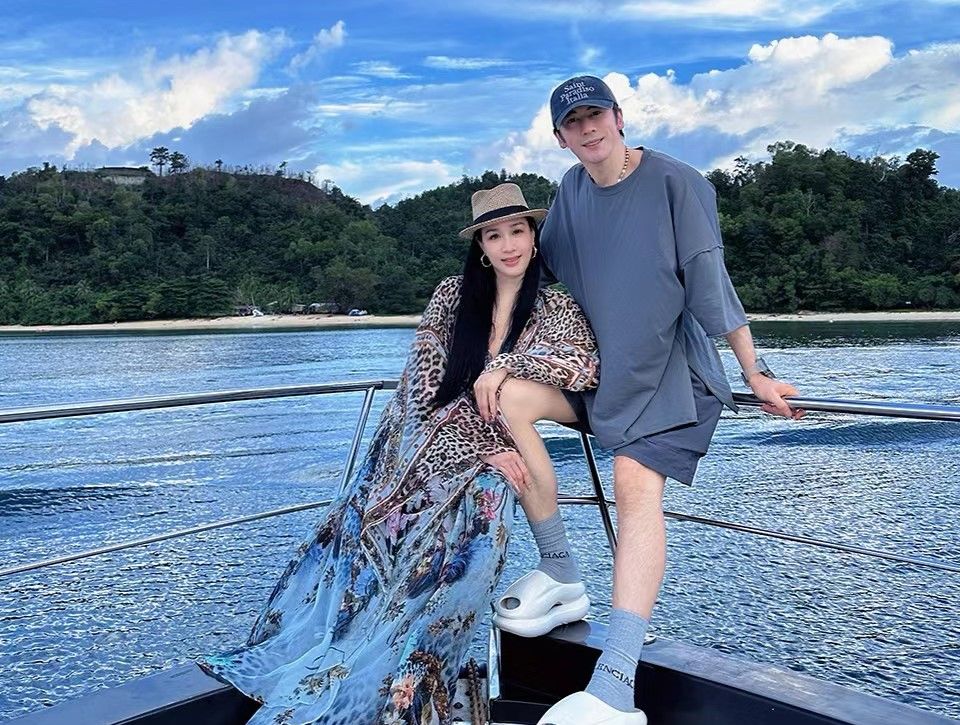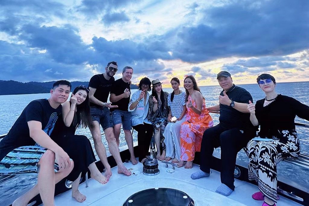Among the pictures uploaded include one of Chung and Zhang, 42, in a loving embrace, two of her striking poses on the yacht, and three of the beautiful orange sunset.