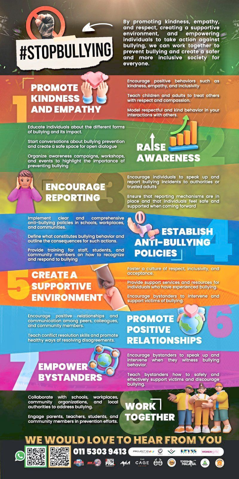 > Members of the public can share their own stories of bullying via the campaign hotline (+6011-53039413) to help in the advocacy towards a safer and more inclusive environment.