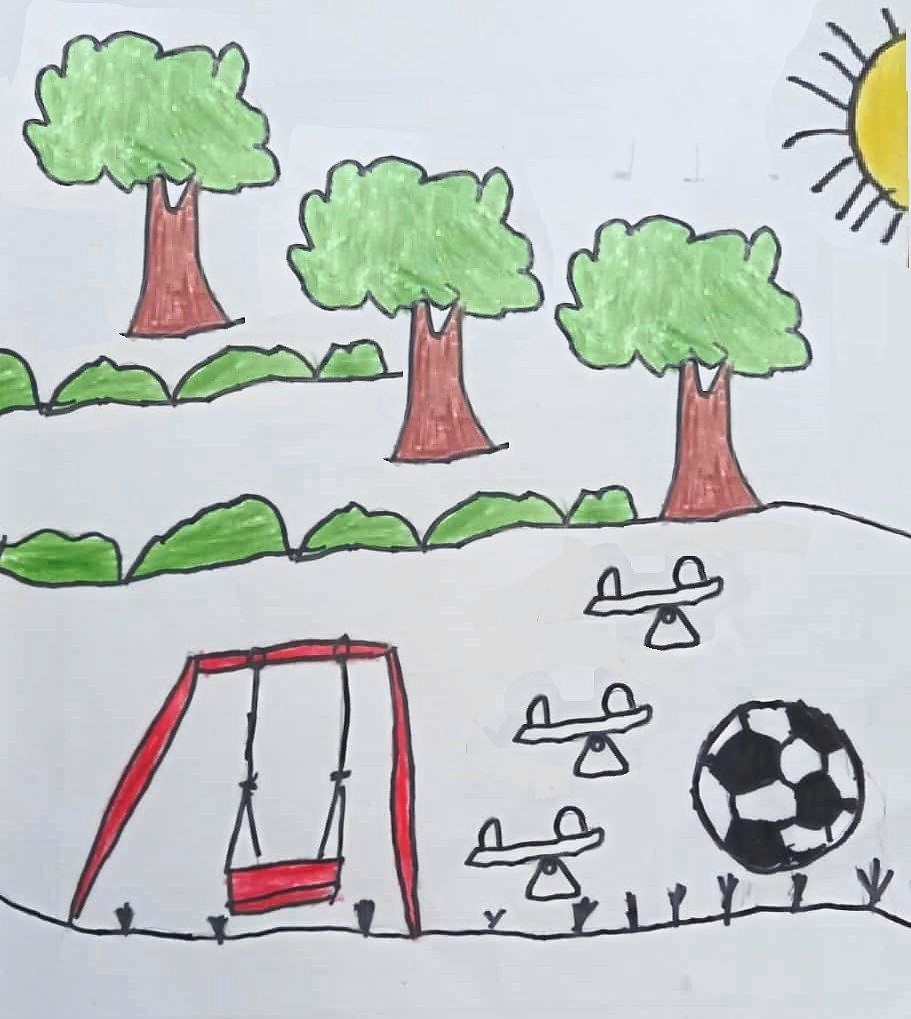 “I would build a bright yellow tunnel and a treehouse in my playground. It would be perfect for playing hide-and-seek and having a quiet place to rest after an exciting adventure,” writes six-year-old Ho Shin Leon.