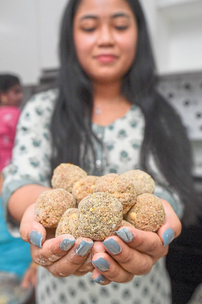 "Kallu urundai must be shaped while the flour and jaggery mixture is still hot, so timing and precision are crucial. If there isn't enough jaggery syrup, the whole thing will crumble," she explains.