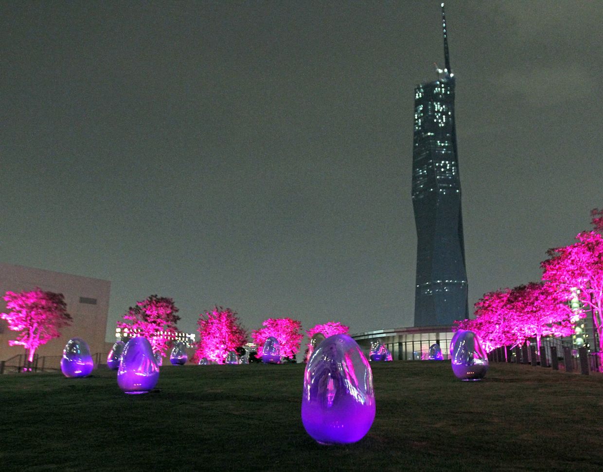 “By night, when the sun sets, it’s LED lights and sound. If you touch an ovoid, the sound resonates from the touched piece to the next until it becomes a magical vibrating symphony,” he adds.