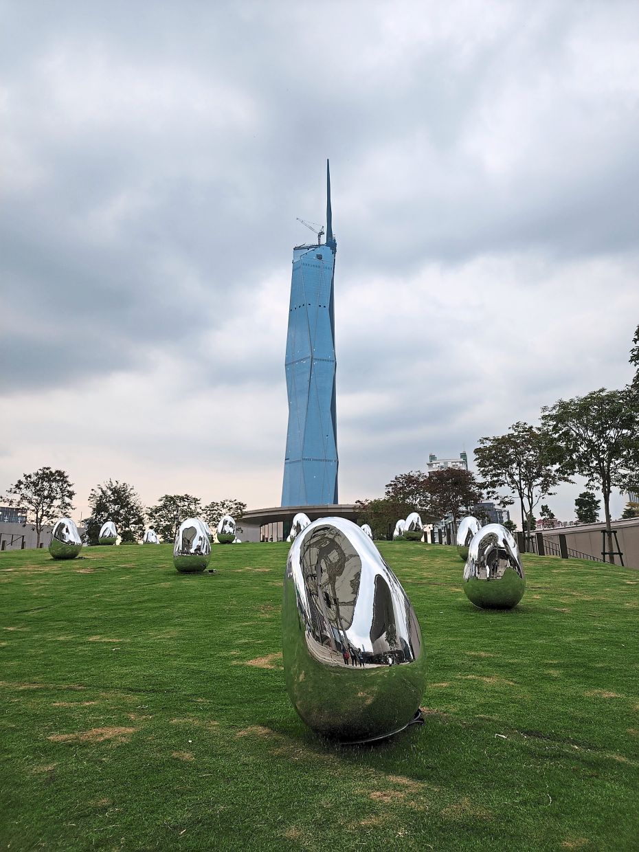 “By day, after the sun rises, it’s a mirror. The countless ovoids (egg-shaped objects) in the garden mirror life and their surroundings - whether it’s buildings, plants, or people and any objects or movement around,” he explains.