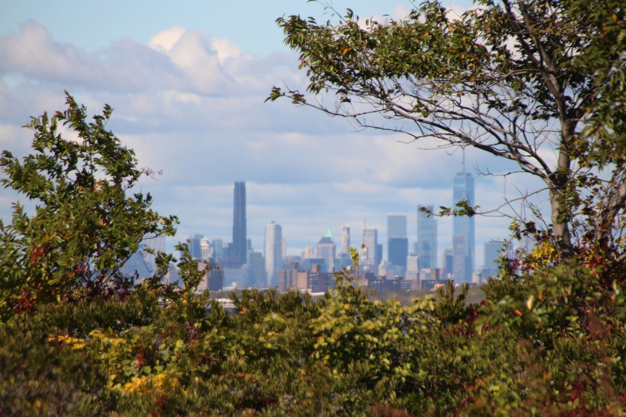 Canadian geese, great egrets and red cardinals can be spotted around the lake, along with turtles and monarch butterflies – and behind the yellow-flowering goldenrods on the horizon, lie the skyscrapers of metropolitan New York, the United States.