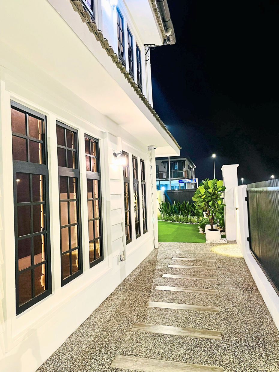 With its French windows, shiplap wall design and landscaped lawn, the double-storey house certainly scores a few points in the aesthetic arena.