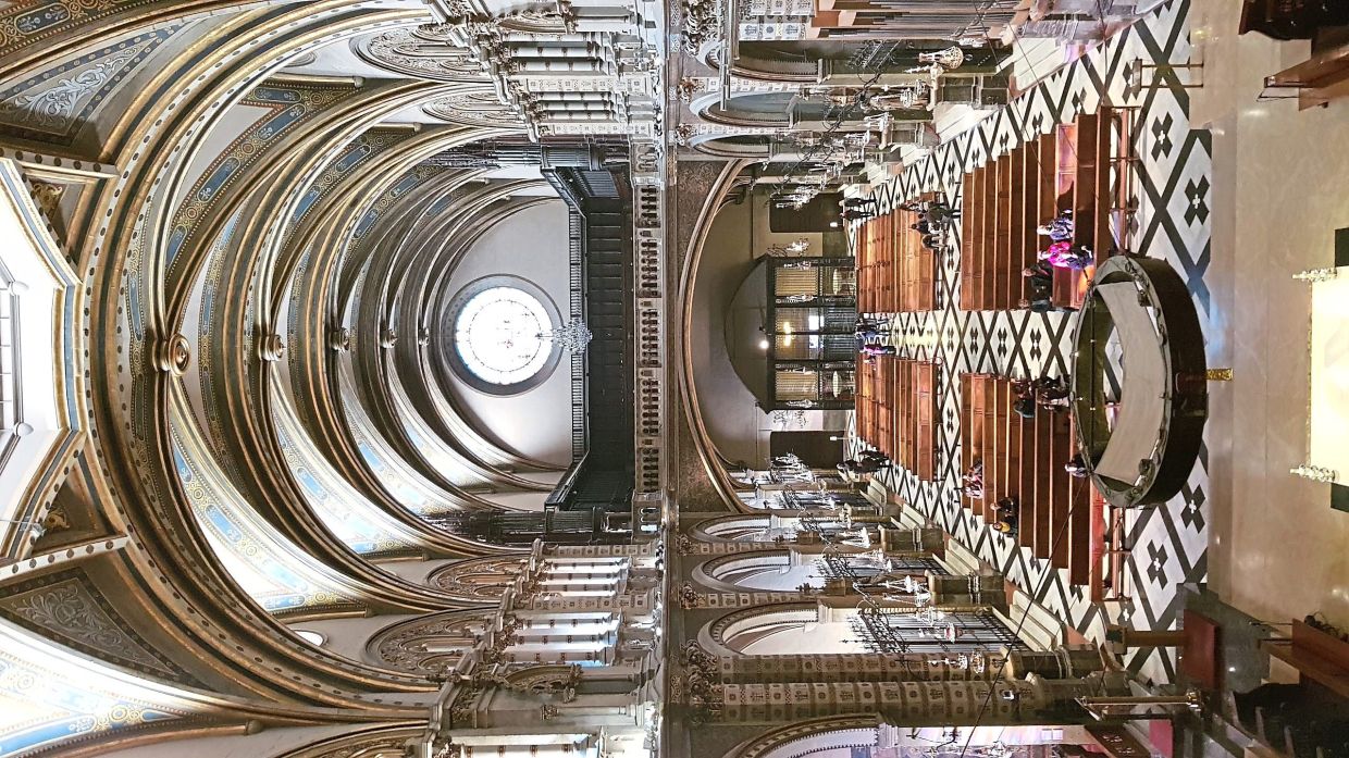 The play of natural lighting and colour is breathtaking as the sun rays enter the large stained-glass windows and move through the day.