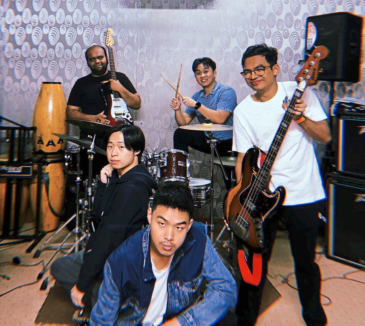 Special band: Zimi J comprises (clockwise from front) Ling, Lim, Johnson, Wong, and Wan Zareef. Photo: Cindy Vyner