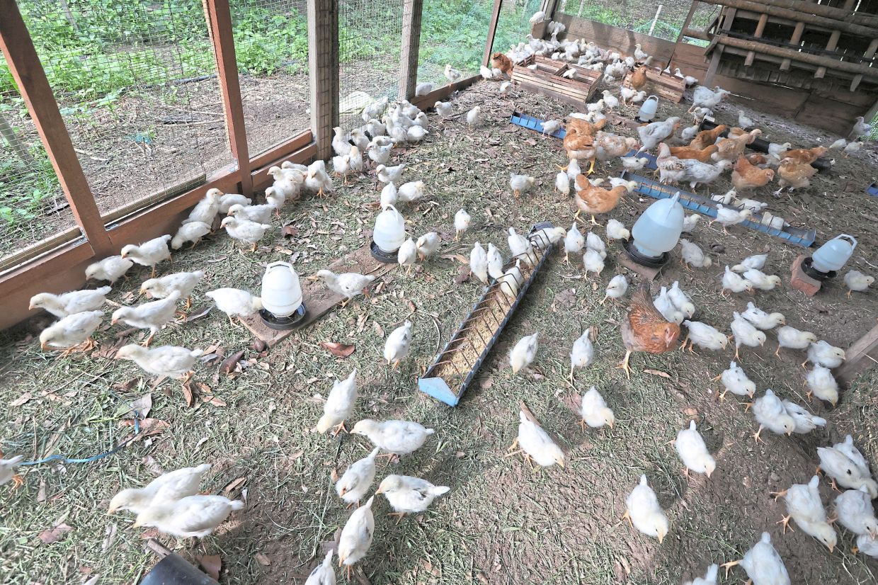 Avoiding chemical use: Ng opts for manual grass cutting instead of chemical treatments, ensuring a natural environment rich in insects and seeds for his chickens.
