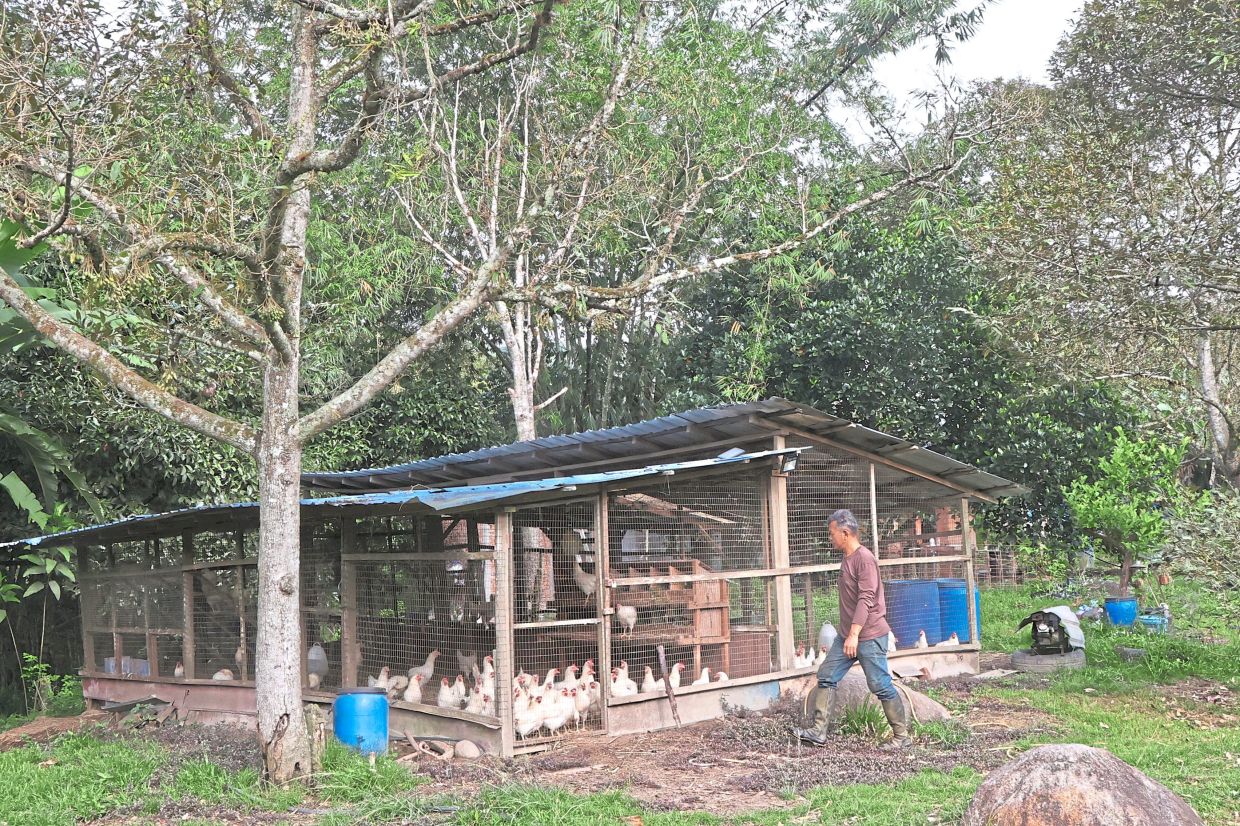 In the lush rolling landscapes of Raub, Pahang once renowned for its gold, a new treasure now thrives: durian orchards. Among one of these orchards is a 10-acre (4ha) farm, where rows of durian trees stand tall and proud alongside free-roaming chickens, creating a harmonious ecosystem that reflects the ethos of its owner.