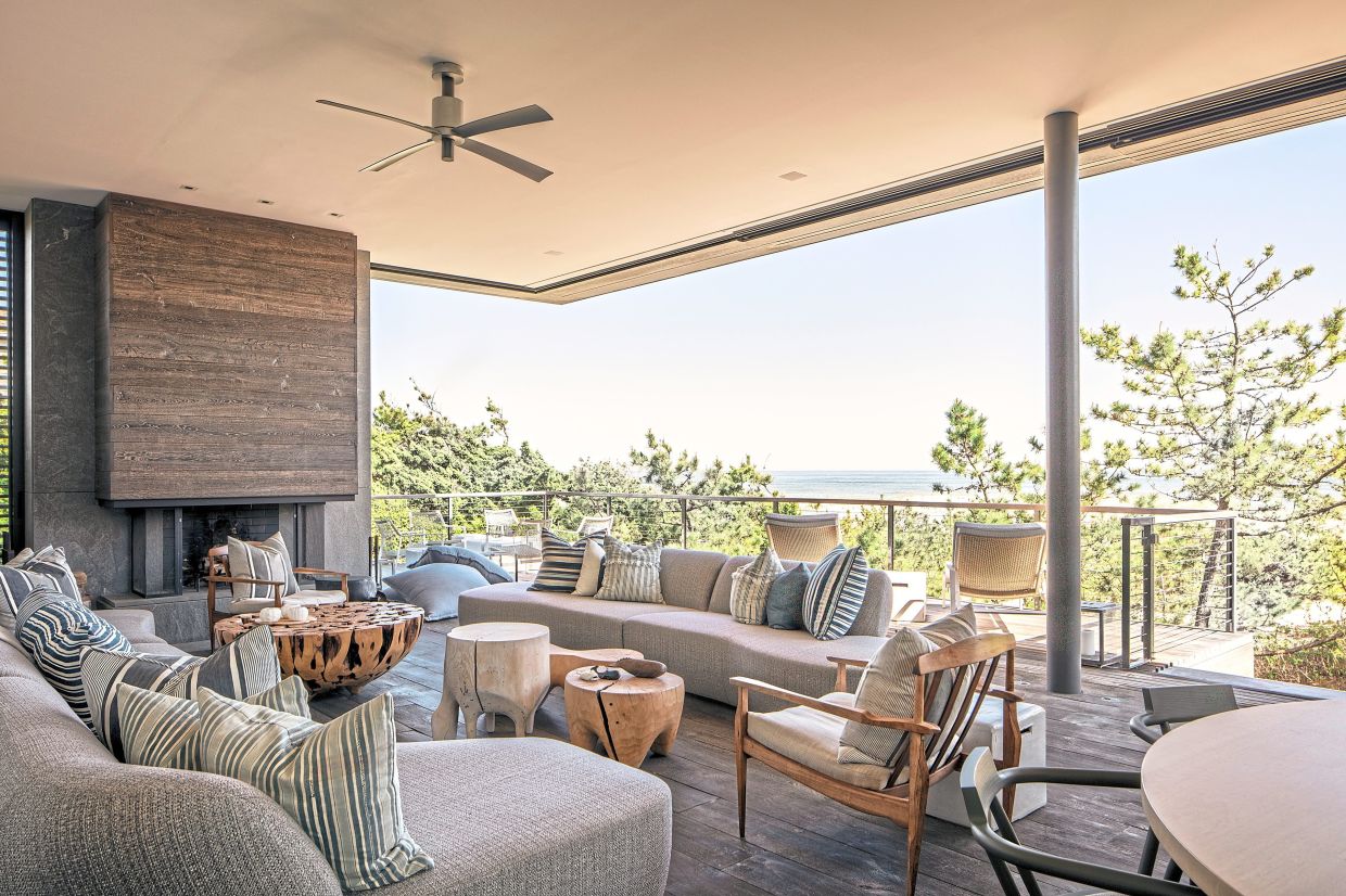 A flat roof maximises living space below and can host a 13kW solar array, planters thick with sedum or a mahogany sun deck. Atop a 4,900sq ft (455sq m) house on Mecox Bay – with interiors by designer Shawn Henderson – the partners gave a Manhattan real estate executive and his wife all three.