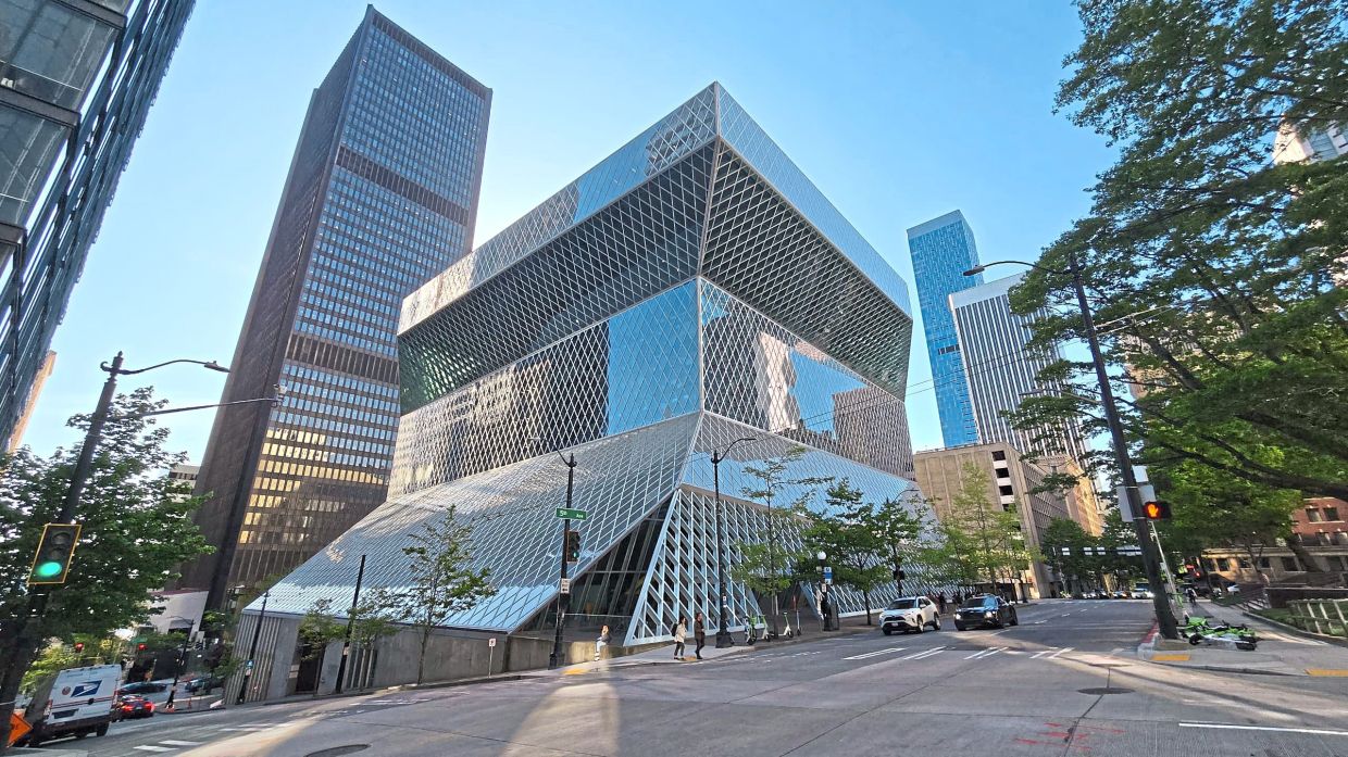 From afar, the Seattle Public Library takes the form of stacked boxes in shifting planes and volumes. Photos: Tan Bee Eu