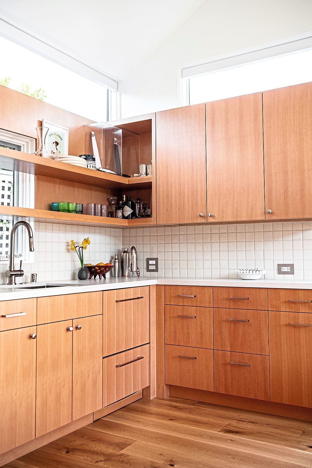 Clerestory windows bring in light and make the space feel bigger. Despite the small footprint, architects Bo Sundius and Hisako Ichiki of Bunch Design added a tall cabinet opening for storing a large Kitchen Aid mixer.