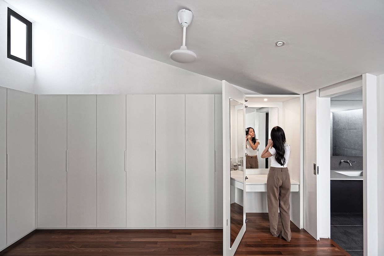 Whether it’s the rooftop deck offering panoramic views of the city, the kitchen island – which doubles up as an entertaining area to host guests – with its concealed basin and cup/glass rinsers, or the carefully curated black floor tiles balancing the brightness of the white walls, CC House reflects Tan’s attention to detail.