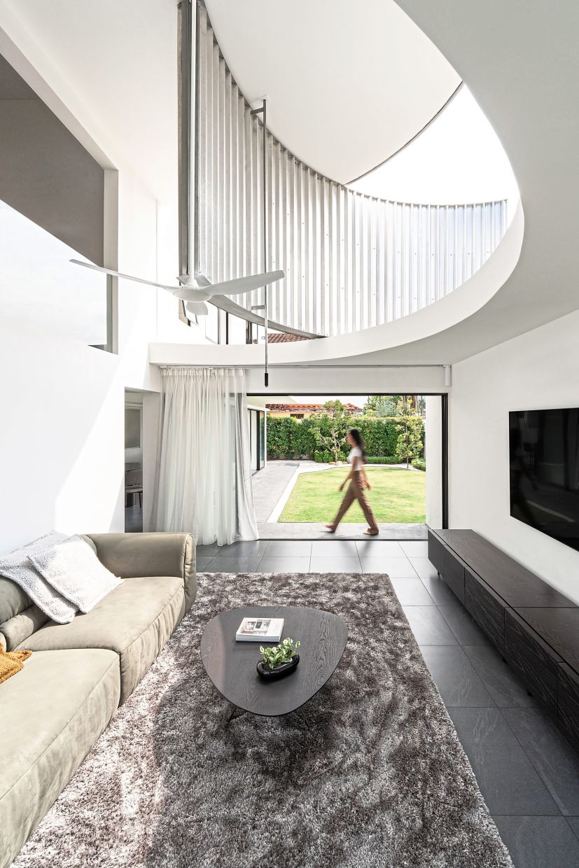“I could have forced it to be square like most houses, but I chose to celebrate the curve, aligning it with the circular motif of the Moon Doors,” Tan shares.